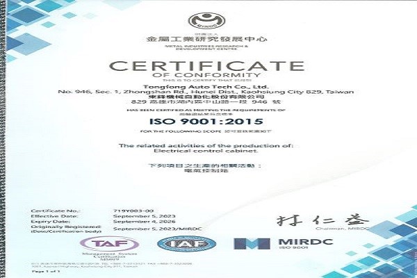 東鋒取得ISO 9001:2015 品質管理系統認證